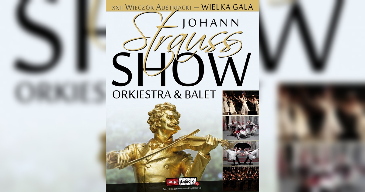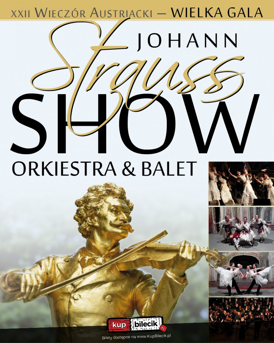 WIELKA GALA JOHANN STRAUSS SHOW - ORCHESTRA & SOLIŚCI & BALLET - to muzyczna podróż do baśniowej krainy walca - świata wprost ze snu pełnego wirujących sukien, pięknych kobiet i flirtujących gentlemenów. Ten jedyny w swoim rodzaju koncert zachwycił już tysiące widzów. W projekcie oprócz znakomitych Solistów bierze udział jedna z najlepszych orkiestr świata, osławiona Royal Sttrauss Orkiestra. Zaprezentujemy Państwu najsłynniejsze kompozycje rodziny Straussów i nie tylko. Epokowe stroje, przepych dekoracji, mistrzostwo choreografów dopełniają całość widowiska pozostawiając je nie zapomnianym. W programie koncertu znajdziemy cudowne walce, zabawne polki w wykonaniu solistów Narodowego Lwowskiego Teatru , Opery i Baletu. Wirtuozerskie arie w wykonaniu Gwiazd oraz nasza piękna dekoracja w połączeniu z choreografią sprawią że spektakl ten będzie niesamowitym przeżyciem. Znakomity zespół zabierze Państwa do krainy baśniowego Wiednia.